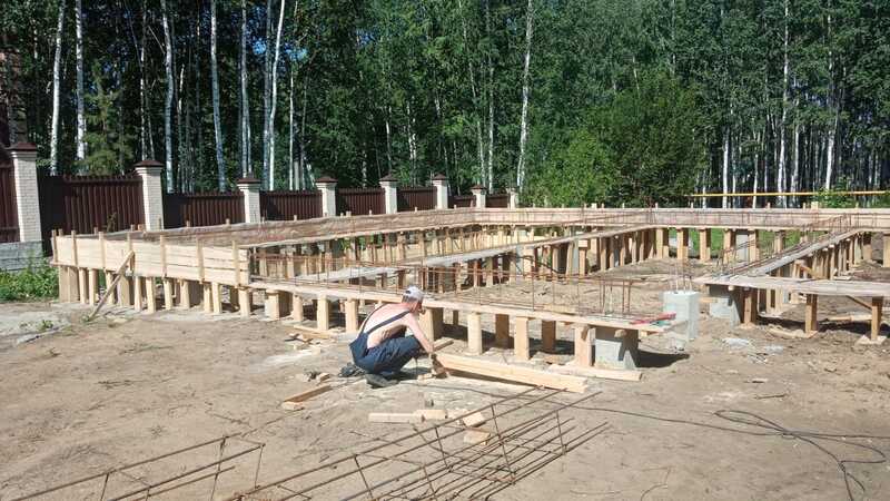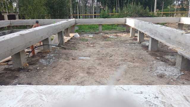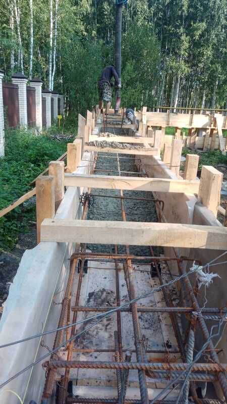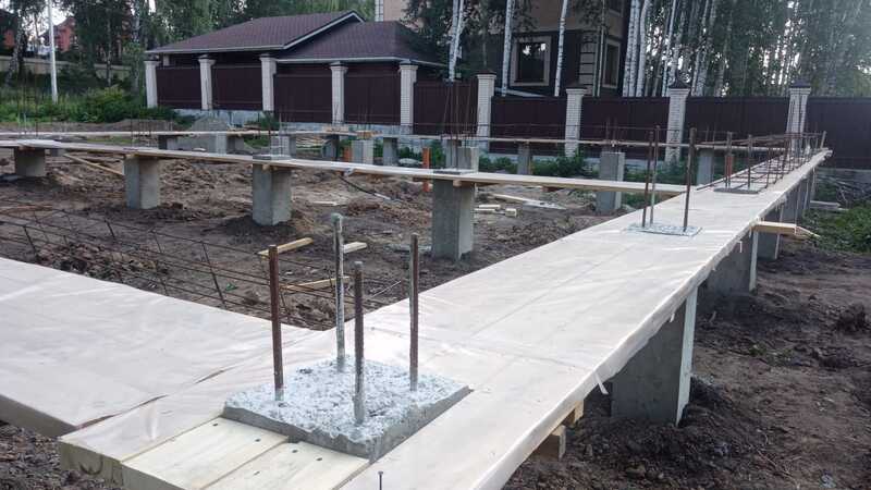 Компания «КСМ Строй Контракт» выполнила строительство свайно-ростверкового фундамента под одноэтажный дом из газобетона в посёлке «Озёрный» (Новосибирская область). Участок имел значительный перепад высот — до 900 мм, что потребовало инженерно точного подхода и расчёта несущих элементов. Фундамент включает 44 буронабивные сваи диаметром 300 мм и ростверк из бетона М300 с армированием Ø12 мм. Выполнена прокладка инженерных коммуникаций, устройство автономной канализации и септика из бетонных колец. Все этапы — от бурения свай до гидроизоляции — выполнены по СНиП и ГОСТ, с применением сертифицированных материалов и контролем качества.