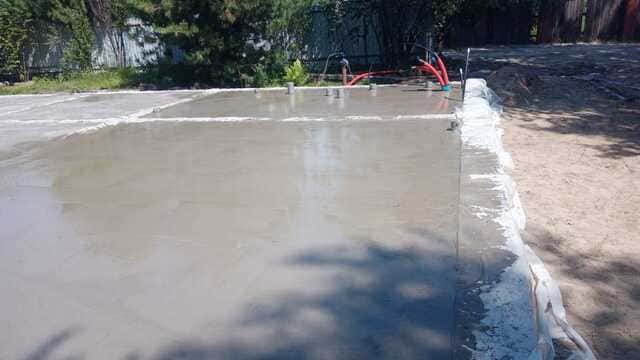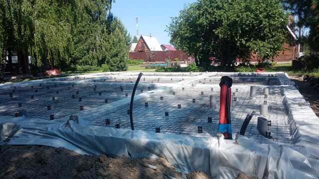 Компания «КСМ Строй Контракт» выполнила строительство ленточного монолитного фундамента с полами по грунту под дом из бруса в СНТ «Виктория», Ордынский район (Новосибирская область). Основание имеет размеры 14,2×12,9 м и выполнено в виде армированной железобетонной ленты с монолитным полом по грунту. Работы включали устройство песчаной подушки, армирование Ø12 мм, заливку бетона М300, прокладку коммуникаций и гидроизоляцию. Все этапы выполнены в соответствии с проектной документацией и требованиями СНиП, с применением сертифицированных материалов.