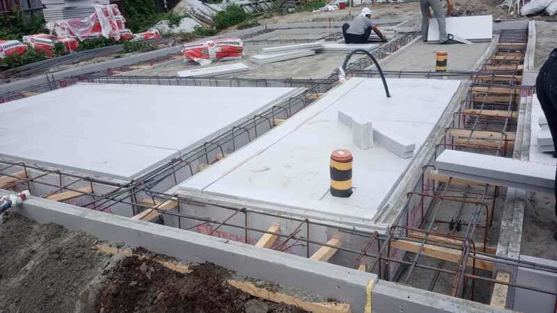 Компания «КСМ Строй Контракт» выполнила строительство утеплённой шведской плиты с рёбрами жёсткости под дом из газобетона в микрорайоне «Затон» (г. Новосибирск). Проект выполнен по индивидуальной документации с учётом инженерных коммуникаций и особенностей участка. Фундамент представляет собой монолитную плиту толщиной 500 мм с интегрированным утеплением ЭППС 100 мм и рёбрами жёсткости для увеличения несущей способности. Проведены работы по демонтажу старого здания, прокладке водопровода, канализации, установке септика и подключению временного электроснабжения. Все этапы выполнены по СНиП и ГОСТ с применением бетона М300 и арматуры Ø12 мм.